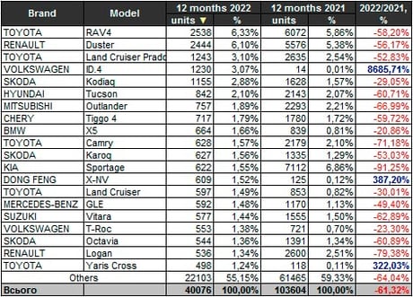 Самые популярные модели новых авто в Украине, 2022/2021